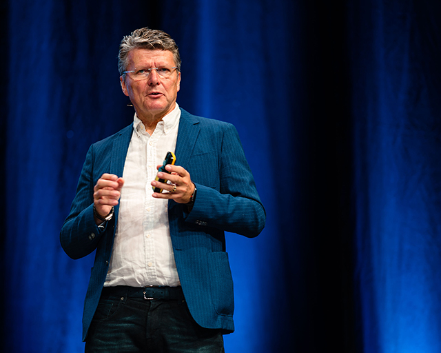 Die Abschlusssession des Tages sowie des hybriden Zukunftsforums 2022 hatte v. a. das Metaverse zum Thema. Professor Oliver Riedel, Institutsleiter des Fraunhofer IAO machte den Anfang und sprach über die Arbeitswelt der Zukunft im Metaverse, die nun zum ersten Mal die kreative Kollaboration ermöglicht, die nur online stattfindet. Zudem stellt er den »Open Twin Campus« vor, der vom Fraunhofer IAO als Use Case und Digitaler Zwilling des ZVE-Gebäudes entwickelt wurde und das Ausprobieren und evtl. Ausweiten neuer Arbeitswelten, Klimaneutralität etc. ermöglicht. Der nächste Redner war Björn Ognibeni, der als Practical Visionary Trends untersucht und schon zahlreiche Firmen in der Transformation begleitet hat – mit besonderem Blick auf Chinas digitale Innovationen und die Learnings für uns. Er betonte, dass das Metaverse vor allem das Problem löst, dass Nutzende online nicht mehr alleine sind und nun auf nie dagewesener Ebene miteinander kollaborieren können. Sabine Reise, Managing Director des Softwareanbieters Allseated Europe, wurde aus Südfrankreich zugeschaltet. Sie stellt das »Meetaverse«, ein corporate Metaverse vor, das digitale Begegnungsräume für Unternehmen schaffen und Engagement, Zusammenarbeit, Produktivität und Vernetzung erleichtern sowie fördern soll. Udo Würtz sprach im Anschluss darüber, was schon bei Fujitsu durch KI, AR und VR möglich ist und wie dadurch Kundenprobleme ortsunabhängig bearbeitet werden können. Er geht davon aus, dass der Fachkräfte- bzw. Arbeitskräftemangel dazu führen wird, dass auch Unternehmen, die bisher keine Notwendigkeit darin sehen, die Technologie nutzen werden. Anna Kopp, CIO bei Microsoft Deutschland, war die letzte im Bunde und online zugeschaltet. Sie sprach über digitalen Optimismus und darüber, was andere Unternehmen in der Digitalen Transformation von Microsoft lernen können. Dabei betonte sie, wie wichtig es sei, dass das Management lernt, wie man die Führung digitaler Teams übernimmt. Mit Enhanced Meeting Rooms, die noch nicht überall verfügbar sind, optimiert Microsoft zudem das hybride Arbeiten und u. a. Meetings zwischen Mitarbeitenden online und vor Ort.